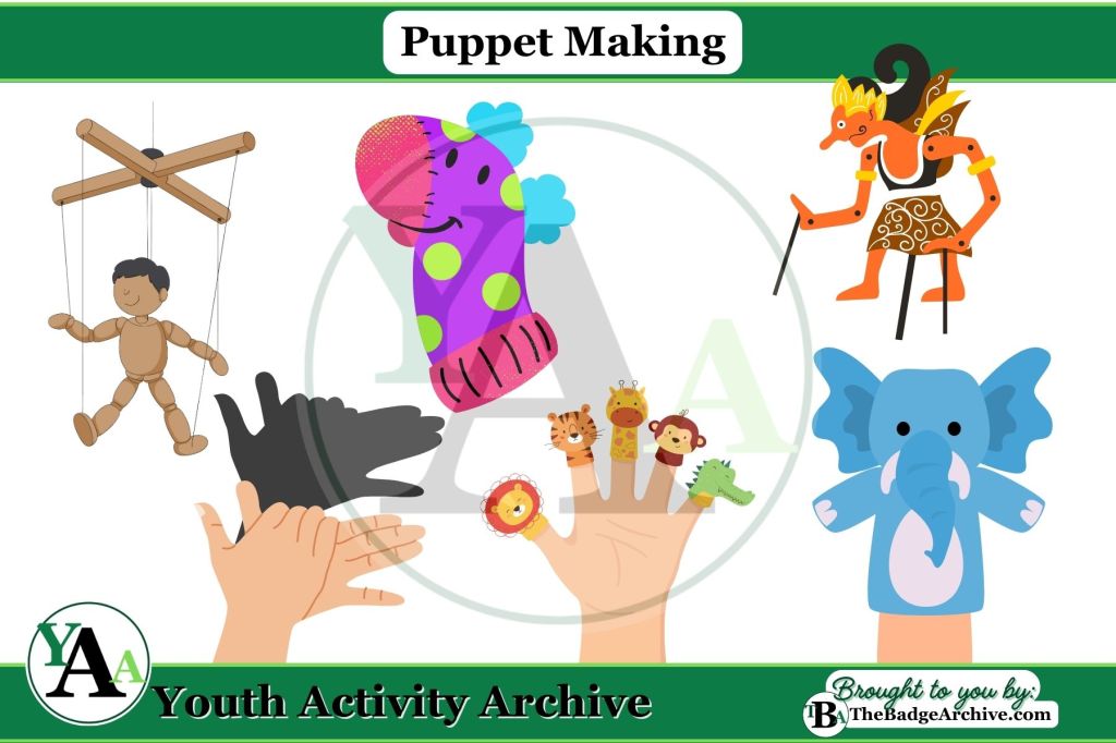 - Glove Finger Puppets – Each finger becomes a character using markers, felt, or yarn. (Suggested in 1993, The Brownie Girl Scout Handbook, pg. 248-251)